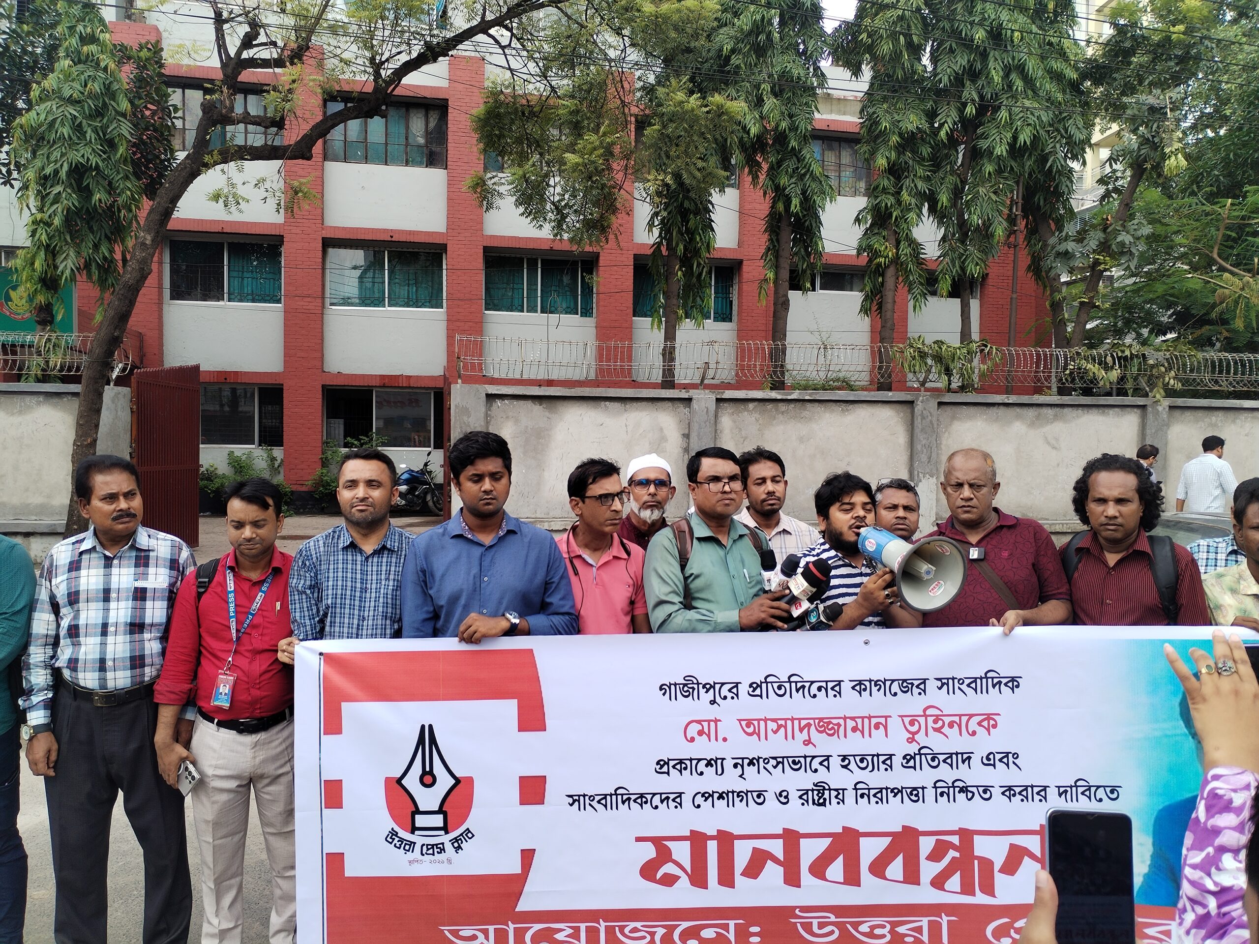 গাজীপুরে সাংবাদিক তুহিন হত্যার প্রতিবাদে উত্তরা প্রেসক্লাবের মানববন্ধন